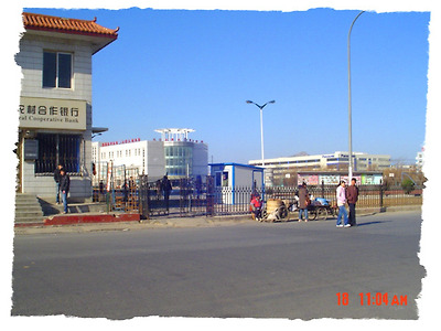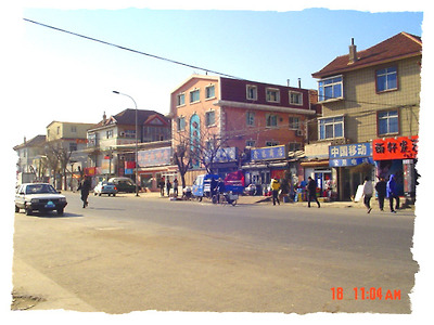 상무대 앞 전경입니다. 저번 눈 내리는 사진하고는 분위기가 좀 다르지요? 오른쪽에서부터 미용실, 핸드폰 가게, 잡화점 음식점 등등입니다. 가운데 있는 건물이 소위 상무대 빨간집인데요. 여기서는 그래도 고급음식점에 속합니다. 한 사람이 20元씩 들고 가시면 중국 요리 몇 개 시켜서 맛을 보실 수 있을거에요. | |