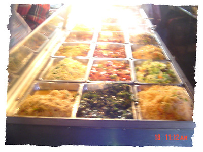 아쉽게도 사진이 흔들려 버렸네요. 딴청 피우는 척 하면서 몰래 찍는거 쉽지만은 않네요. 이게 뭐냐하면 바로 반찬들인데요. 자신이 원하는 반찬 몇 가지를 고르면 밥이랑 해서 포장을 해줍니다. 한 5元이면 적당하게 고기와 채소반찬을 섞어 드실 수 있는데요. 저는 혼자 이거 사서 먹으면 좀 우울해지곤 했습니다. | |