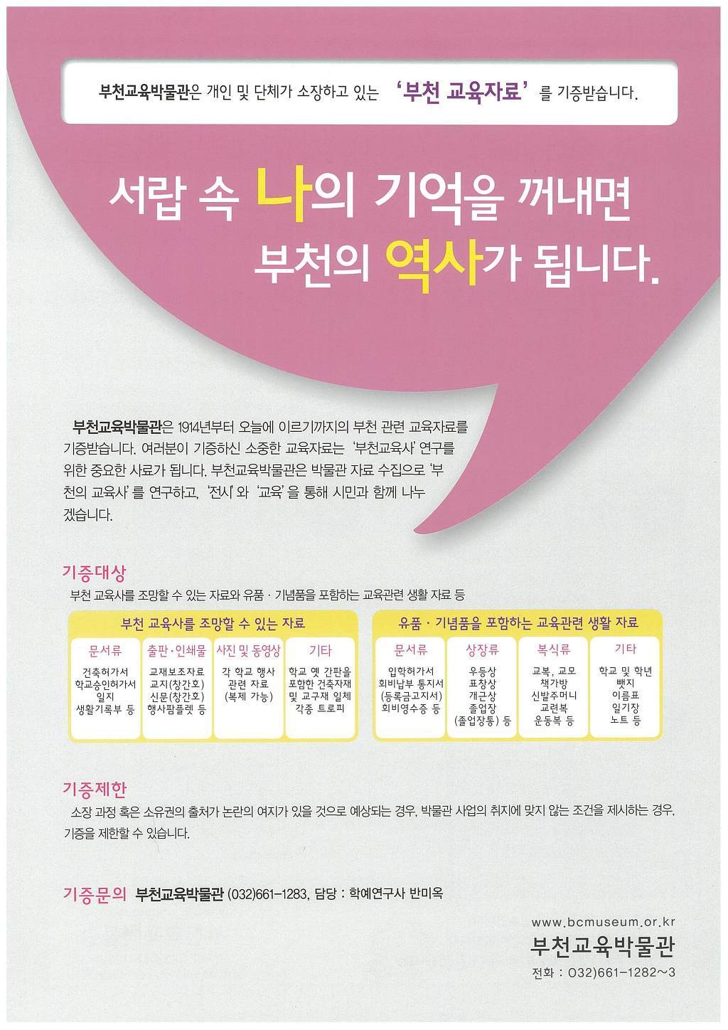 라. 문 의 : 부천교육박물관 032)661-1283 (담당:학예사 반미옥)