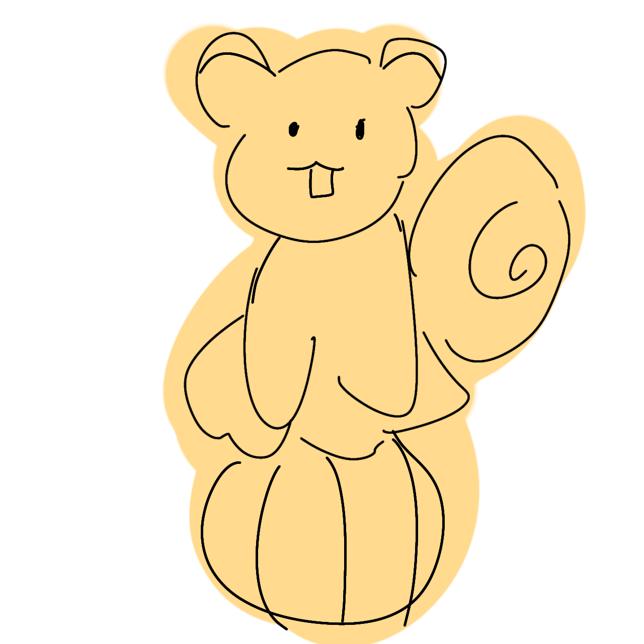 하나는 공 위에 다람쥐가 있는 주황색 인형