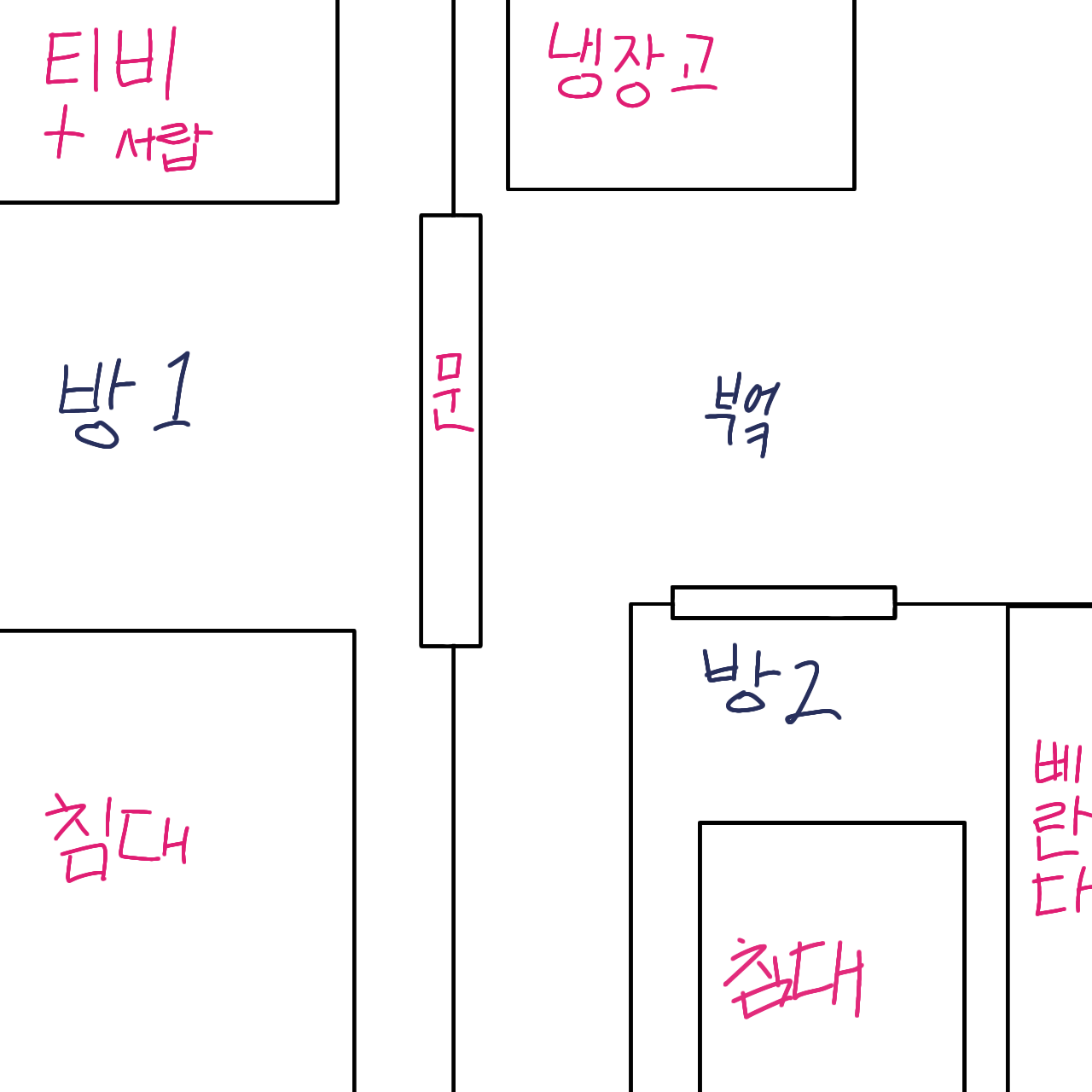 먼저 제가 살았던 곳의 집 도면을 간단하게 그려왔습니다!