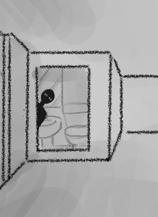 그 거울 속으로 비치던 형체가 화장실에서 고개를 내밀어 저를 쳐다보았고, 저는 너무 놀란 나머지 바로 눈을 떴습니다.