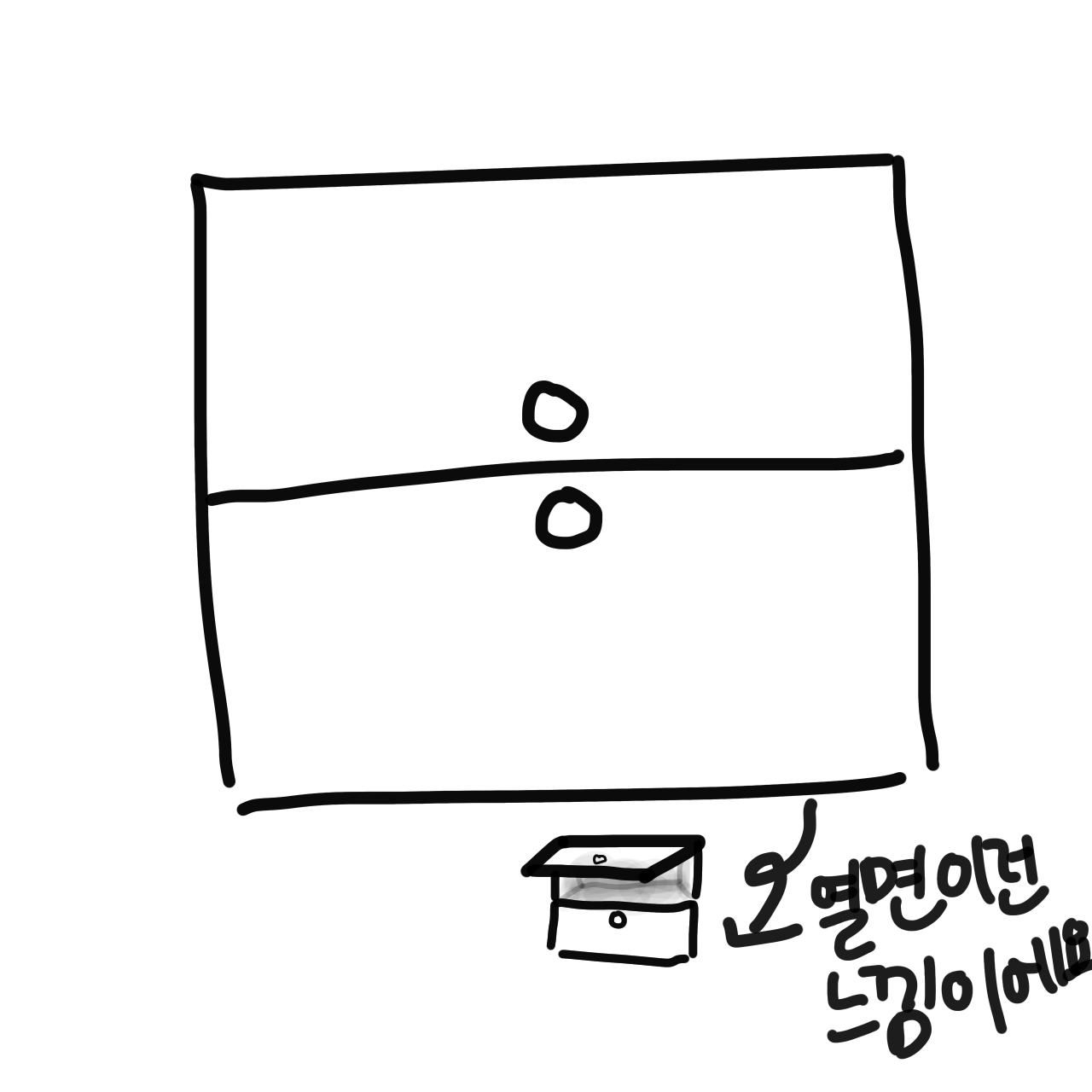 그런데 친구 2는 윗서랍을 열고 사색이 되어있더라고요