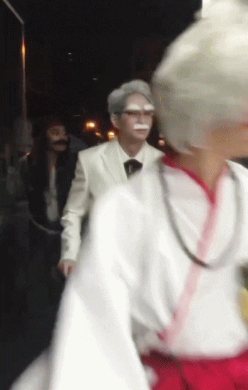 그들의 컨셉유지는 파티장을 벗어나도 계속됩니다.