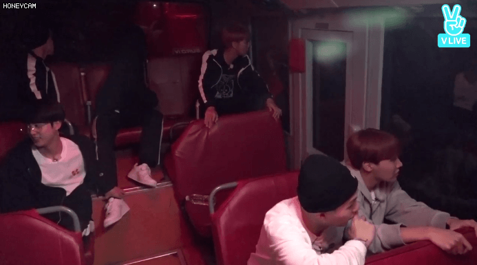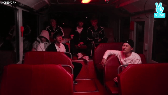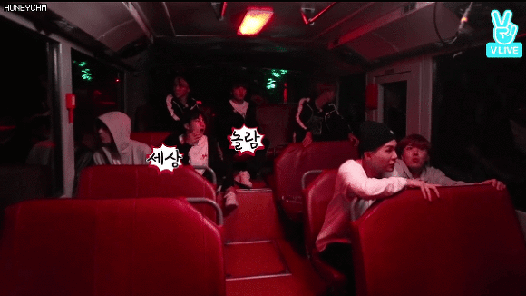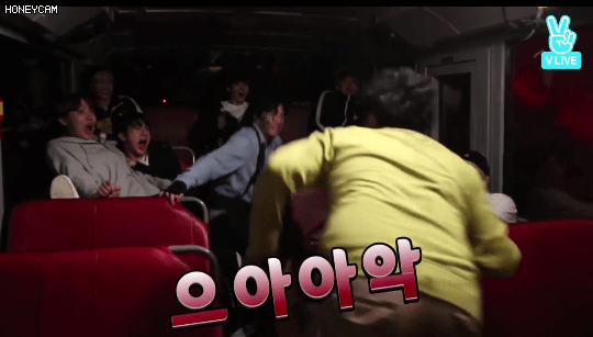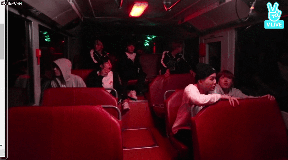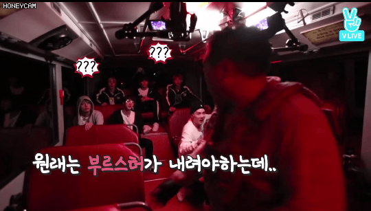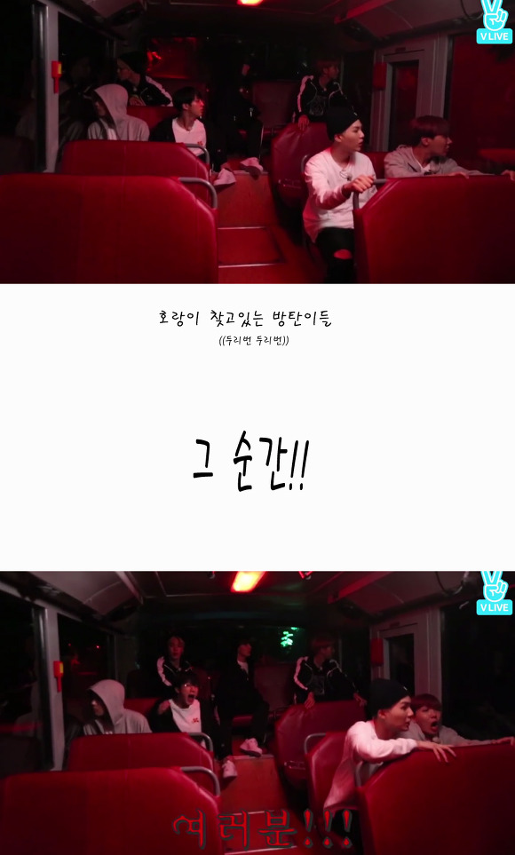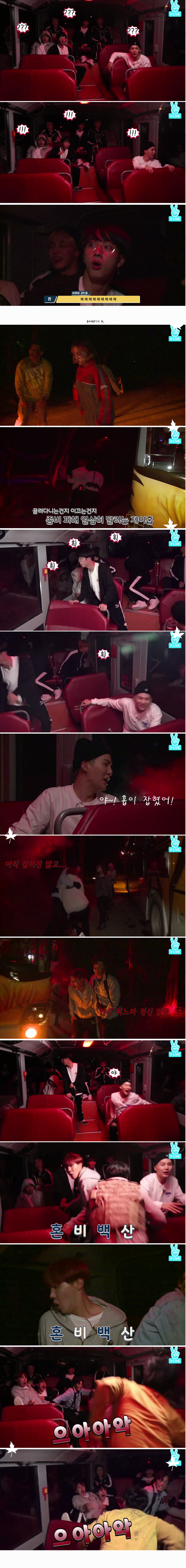 홉이의 괴성이 울려퍼지자 버스안에 있던 멤버들 당황