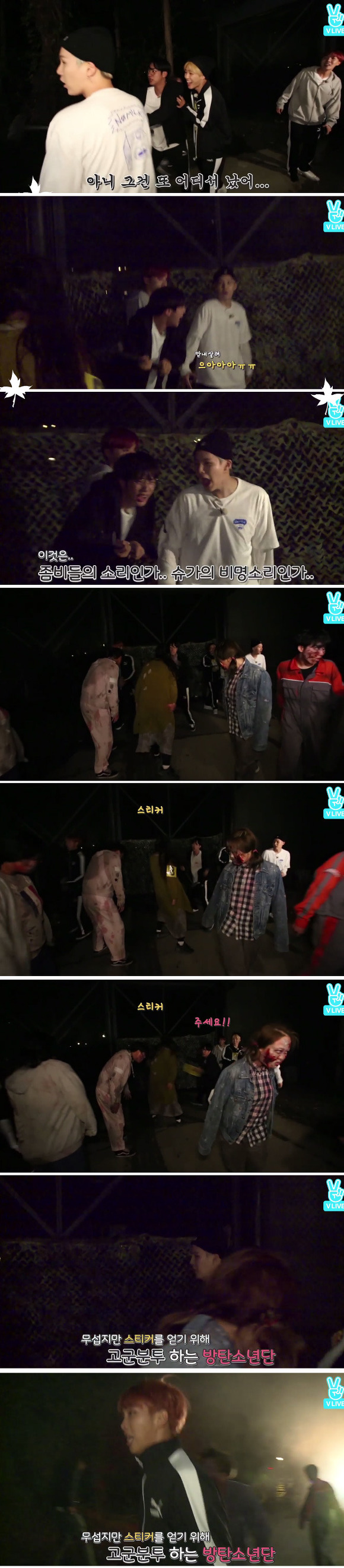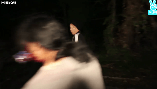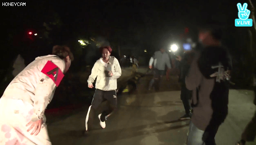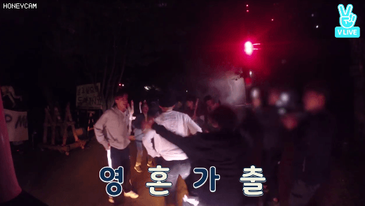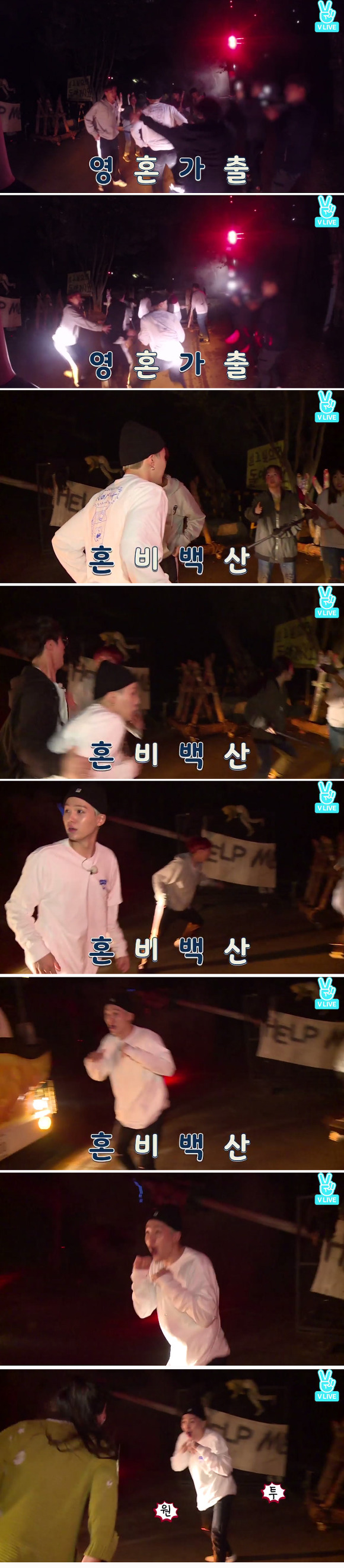 뒤에서 들려오는 알수없는 괴성에 화들짝 놀라 도망가는 멤버들