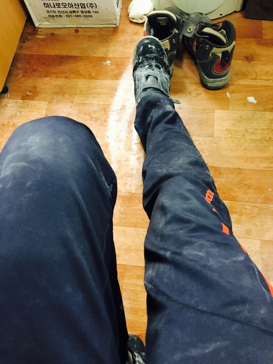 사진은 일끝나고 현장 쉴때 안전하게 찍은거라 잠깐 풀렀어요 ㅠㅠ 일할땐 마스크끼고 헬멧고정해서 제대로 맵니당!!걱정 감사해욤