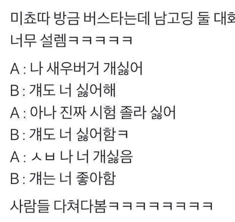 작성자helloH 작성시간 17.12.25 전에 살던곳 학군이 남중교 명문여고 막 있는동네인데 애들 하교 시간에 같은버스탔는데 남중애 둘이 등치작은애 억지로 친구가 앉히더니 저 내릴때 까지 머리쓰다듬고 여기저기 만지고 다정미 뿜던거 생각납니다 옆자리였는데 대화는 없었어서 안보는척 보면서 혼자 소설 썼던 쿨럭 ㅋㅋ