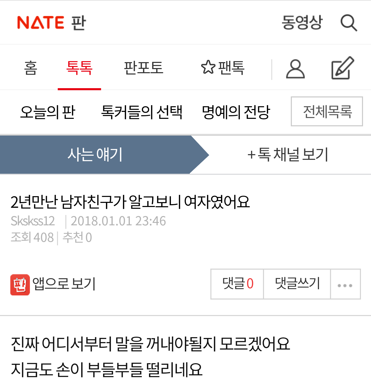 16년도 7월에 만난 남자친구가 17년 12월말에 여자인걸 알게되었어요
