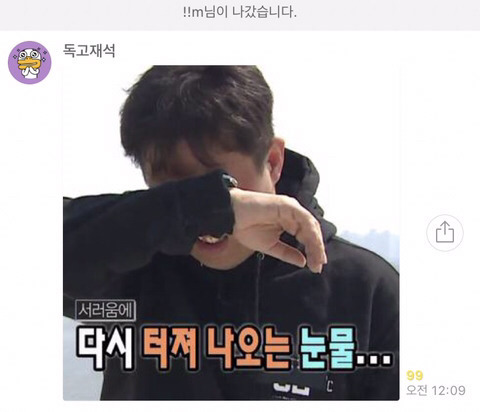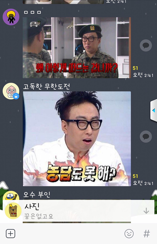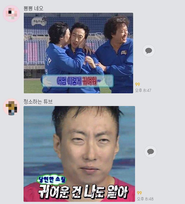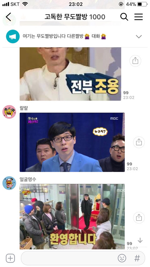 작성자쿠푸 작성시간 18.01.20 고독한 방인데 짤로 대화가능한게 너무 웃겨욬ㅋㅋㅋㅋㅋㅋㅋㅋㅋㅋㅋㅋ