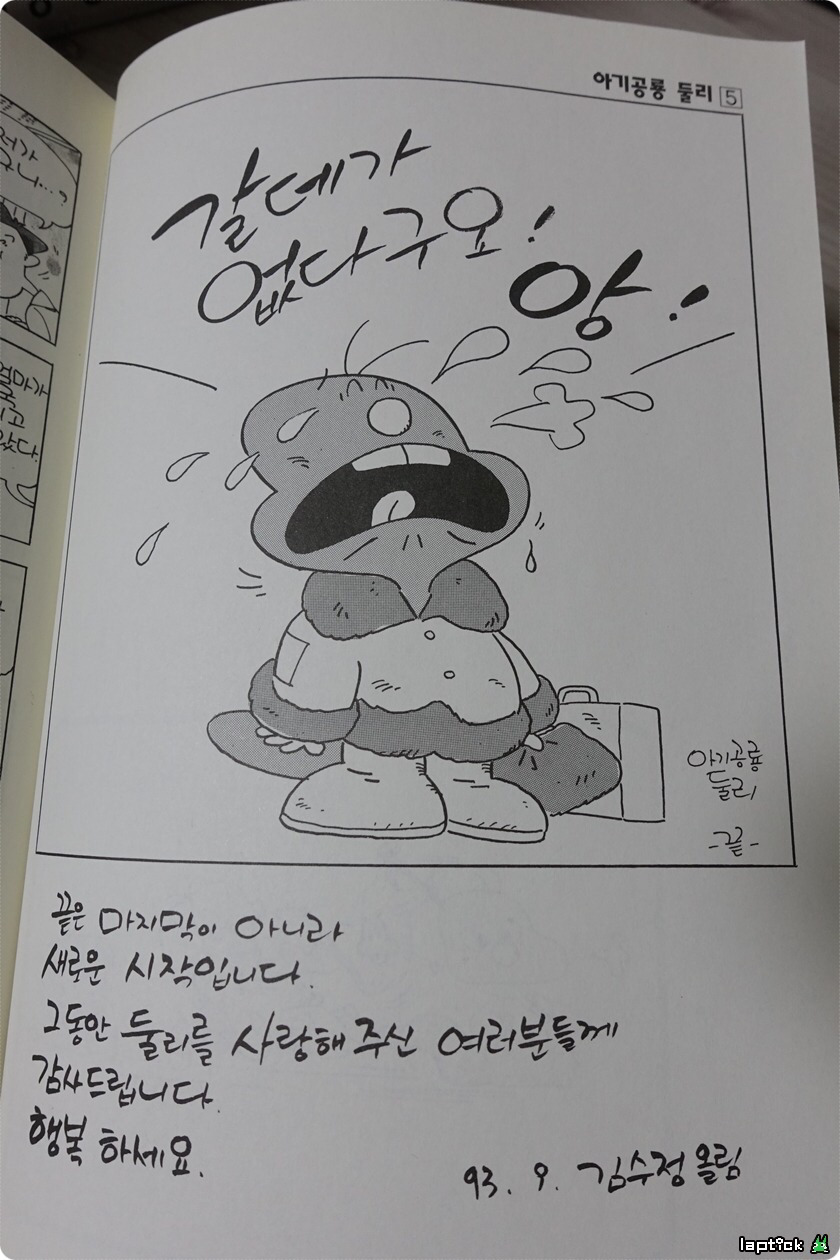 근데 사실은 돌아간 당시도 전혀 행복한 시절이 아니었으며, 바로 다음장이 노래를 부르는 둘리에게 고길동이 시끄럽다며 슬리퍼를 던져 판을 뒤엎고 구박을 하는 장면이어서