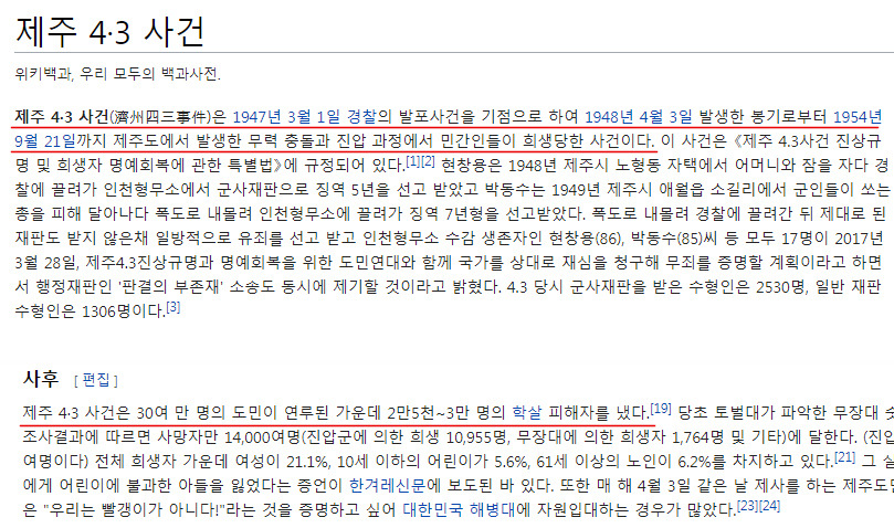 출처 https://www.facebook.com/wikitre, http://news.naver.com/main/read.nhn?mode=LSD&mid=sec&sid1=102&oid=003&aid=0008522647, https://ko.wikipedia.org/wiki/제주_4·3_사건