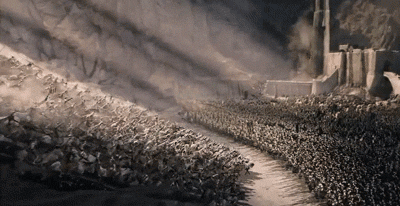 해가 뜰 무렵 일출과 함께 동쪽에서 나타난 간달프와 로히림ㅜㅜ