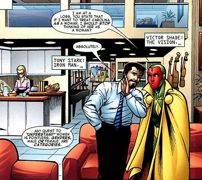 93. 그러나 토니 스타크가 아이에게만 잘 대하느냐 하면, 플레이보이는 플레이보이인 이유가 있다. 여성을 여성이란 카테고리에 묶어 고정관념으로 대할 생각 말고 그 개인을 보라며, 만약 끝까지 잘 모르겠어도 미스터리 또한 최고의 데이트일 거라 말하는bb