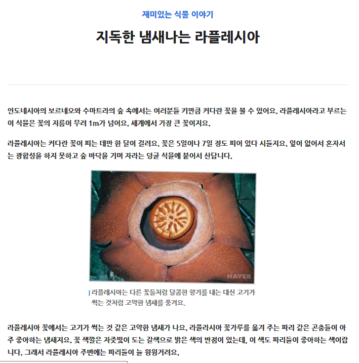 설명을 좀 덧대자면 엽록소 라는 세포가 없어서 광합성을 하지 못하는 식물 라플레시아는