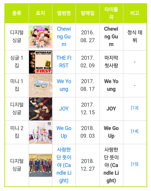 트위터 캡처(@lovehcmore, @haetzzan, @boule_billardn8),나무위키/nct dream, 나머지 본인 작성