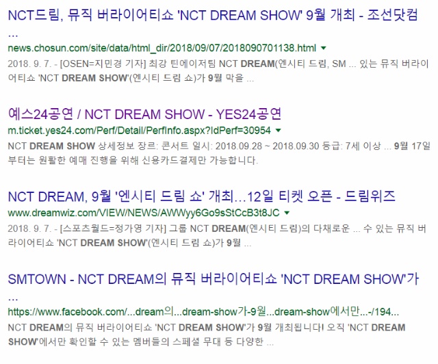 출처 : 구글 검색(검색어:nct dream, 드림쇼, 가온차트 3분기, 마크 위영),