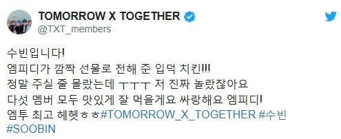 연준 : 수빈이가 제일 좋아하는 치킨은?