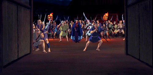산은 가족을 위협하는 인간들의 마을로 쳐 들어가 그 무리의 두목 '에보시'와 목숨을 건 결투를 벌이는데 누가 봐도 산이 불리한 상황