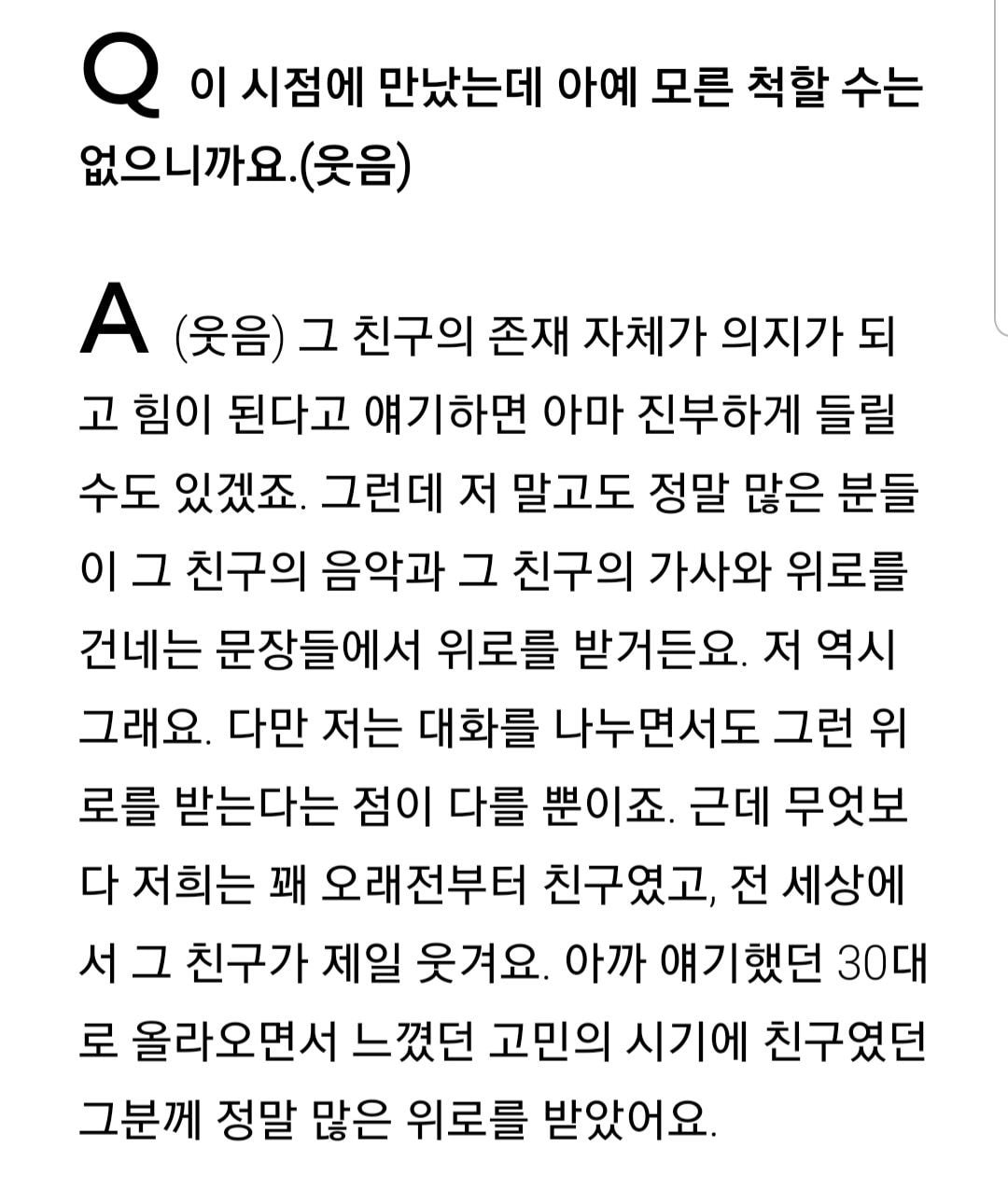 작성시간 23.03.19 팬들은 노래와 가사에서 위로를 받지만 나는 대화를 하면서도 그럴 수 있다라는 말은 좀..