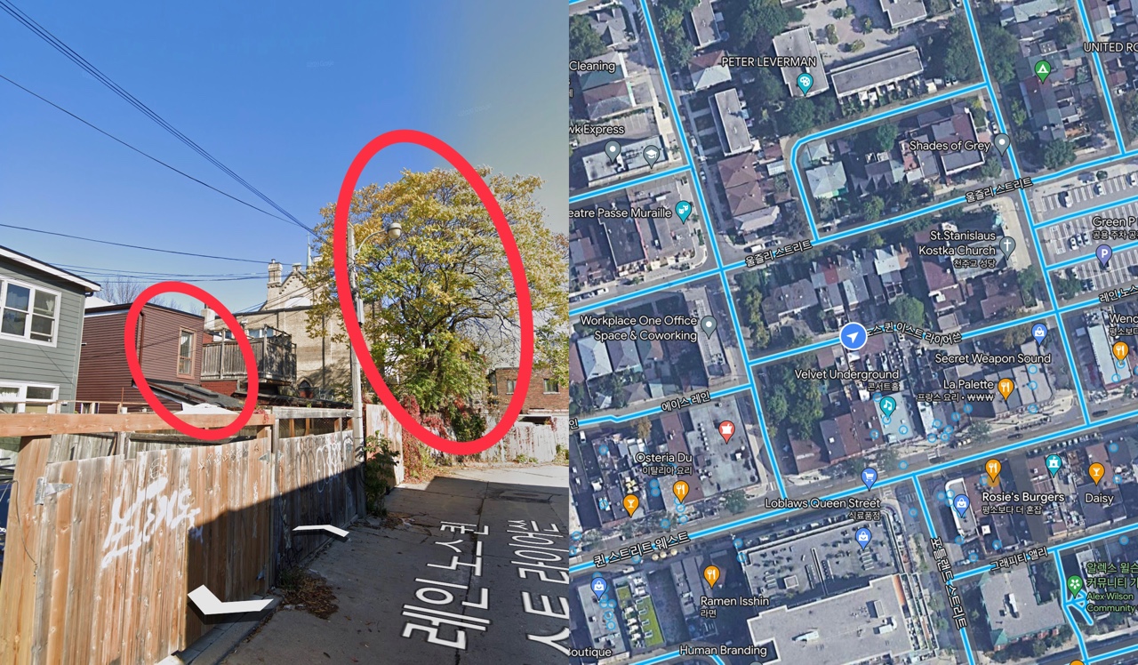 찍은 장소는 토론토 시내 북쪽이라는 걸 알 수 있습니다.