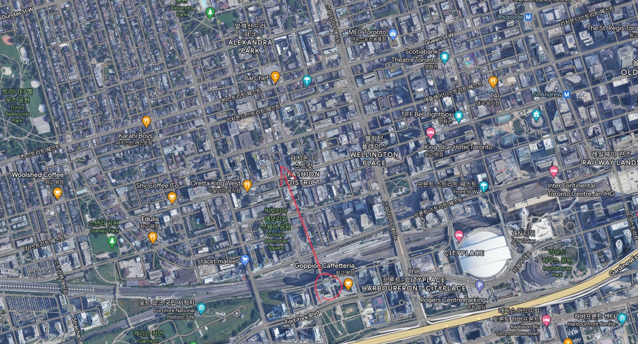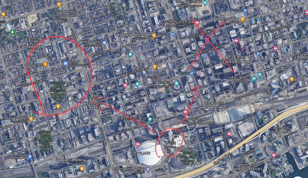 따라서 촬영장소는 CN타워 서북쪽이겠네요.
