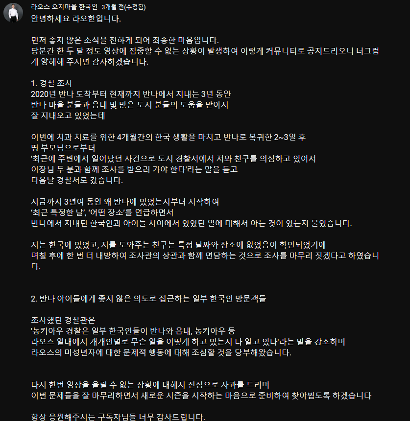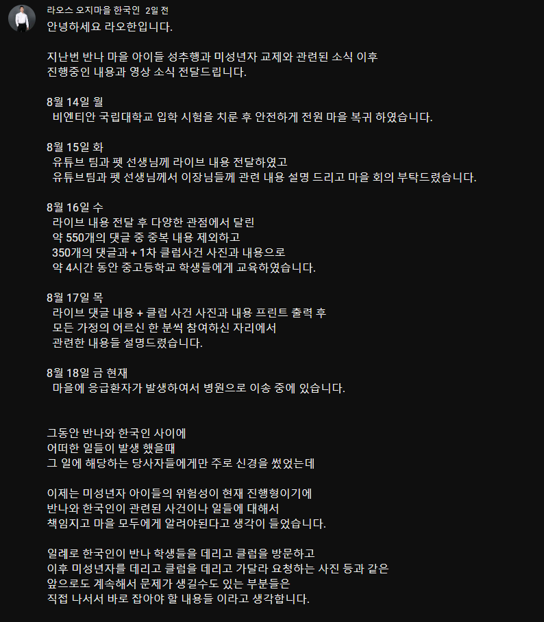 [기타]유튜브 '라오한(라오스 오지마을 한국인)'을 보고 반나마을을 찾아가서 미성년자 아이들 성추행하고 다닌 한국인 남성