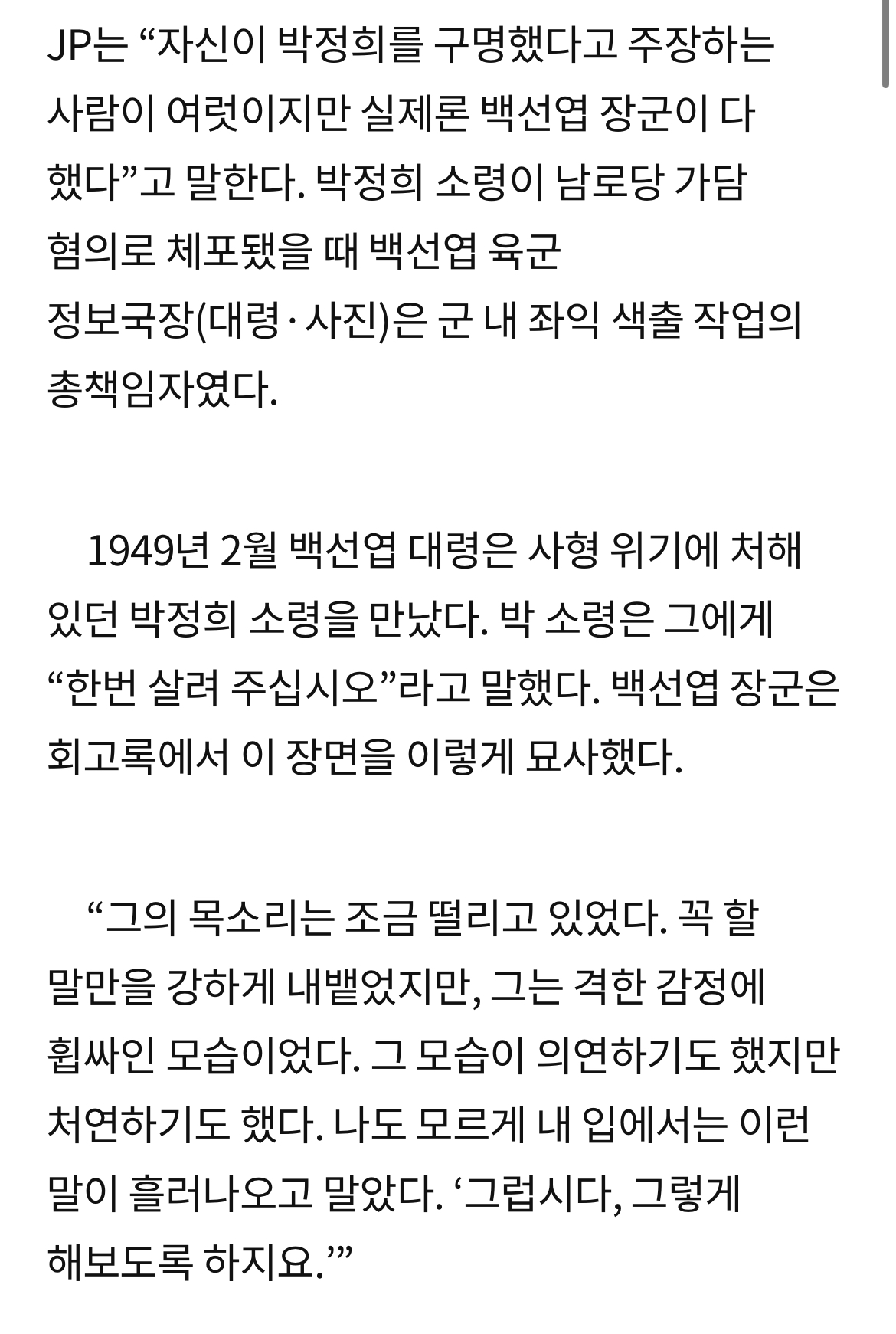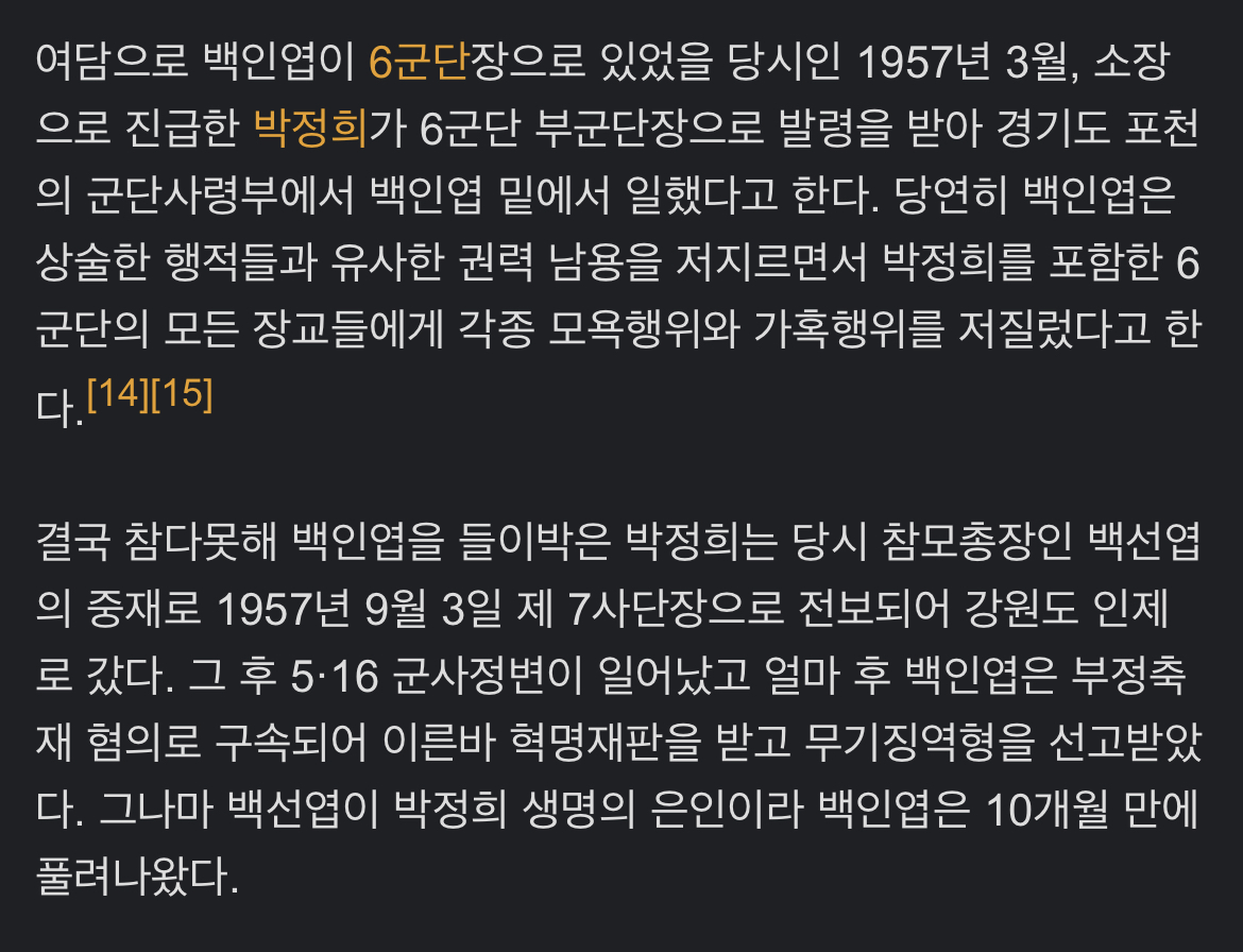 백선엽에게 빌빌 기었고, 백선엽은 박정희를 살려줌