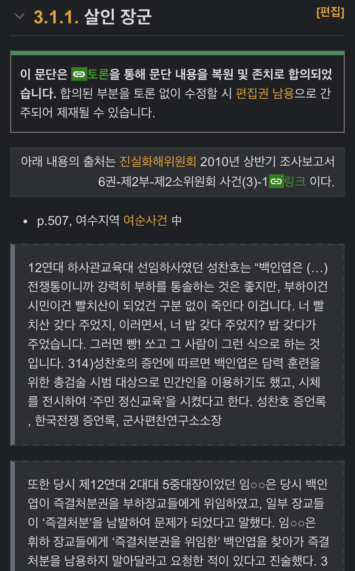 백인엽을 검색해서 즉결처분이 나오는게 아니라