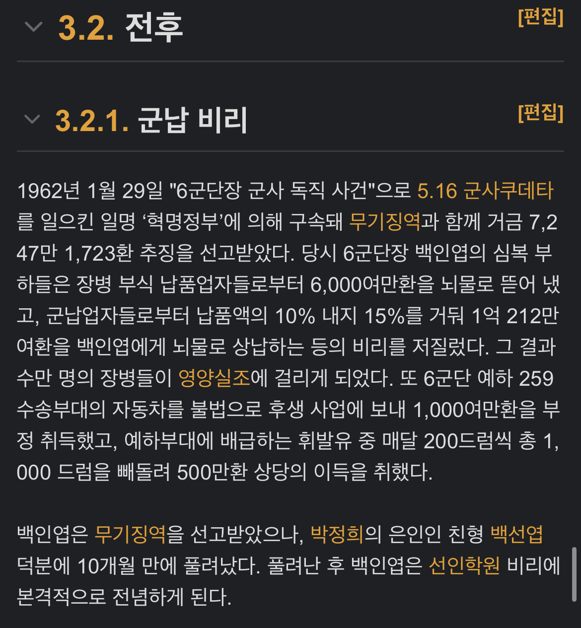 ‘월간조선’에서 백인엽의 비리를 특별보도 할 정도ㅋㅋ