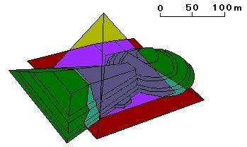 쿠푸왕의 피라미드(노란색), 진시황릉(붉은색), 다이센 고분(초록색) 크기 비교