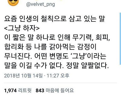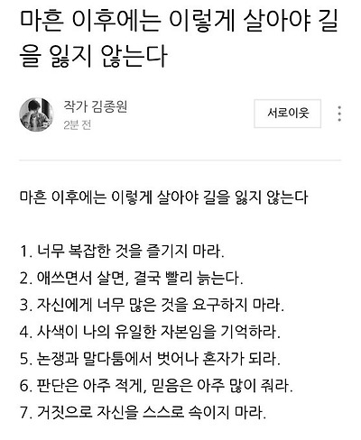 소주담(談) : 소소한 주민들의 이야기 [기타]망할듯 망할듯 망하지 않는 것이 바로 인생 작성시간25.04.26|조회수15,885 목록 댓글 9 글자크기 작게가 글자크기 크게가 출처 :https://theqoo.net/square/3707744140 다음검색 현재 게시글 추가 기능 열기 북마크 공유하기 신고 센터로 신고 댓글 9 댓글 리스트 작성시간 25.04.26 감사합니다💕 작성시간 25.04.26 오늘 멋진 하루가 될거야 뚠뚠~ 작성시간 25.04.26 좋은 글 감사해요^^ 작성시간 25.04.26 감사합니다♡ 작성시간 25.05.02 감사합니다 카페 방문해 더 많은 댓글 만나기!