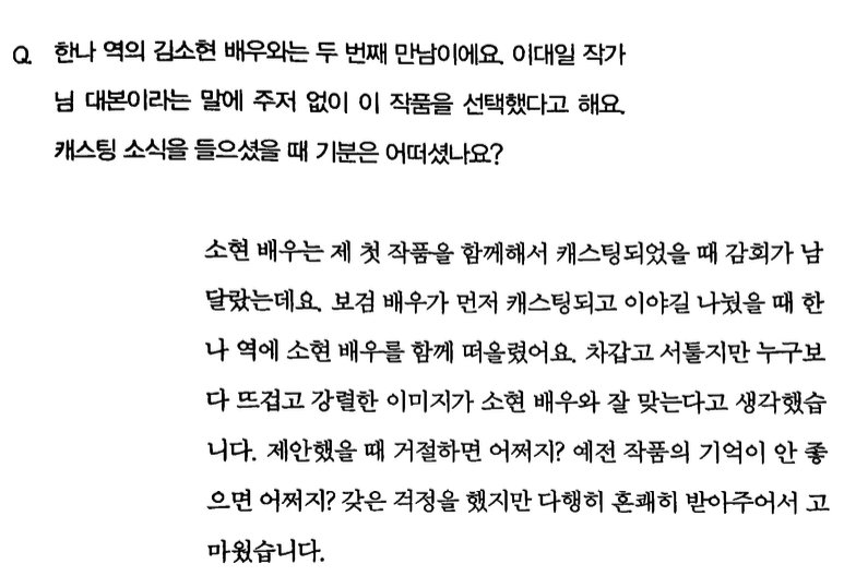 여자주인공 역할에 누가 어울릴지 함께 이야기를 나눴는데