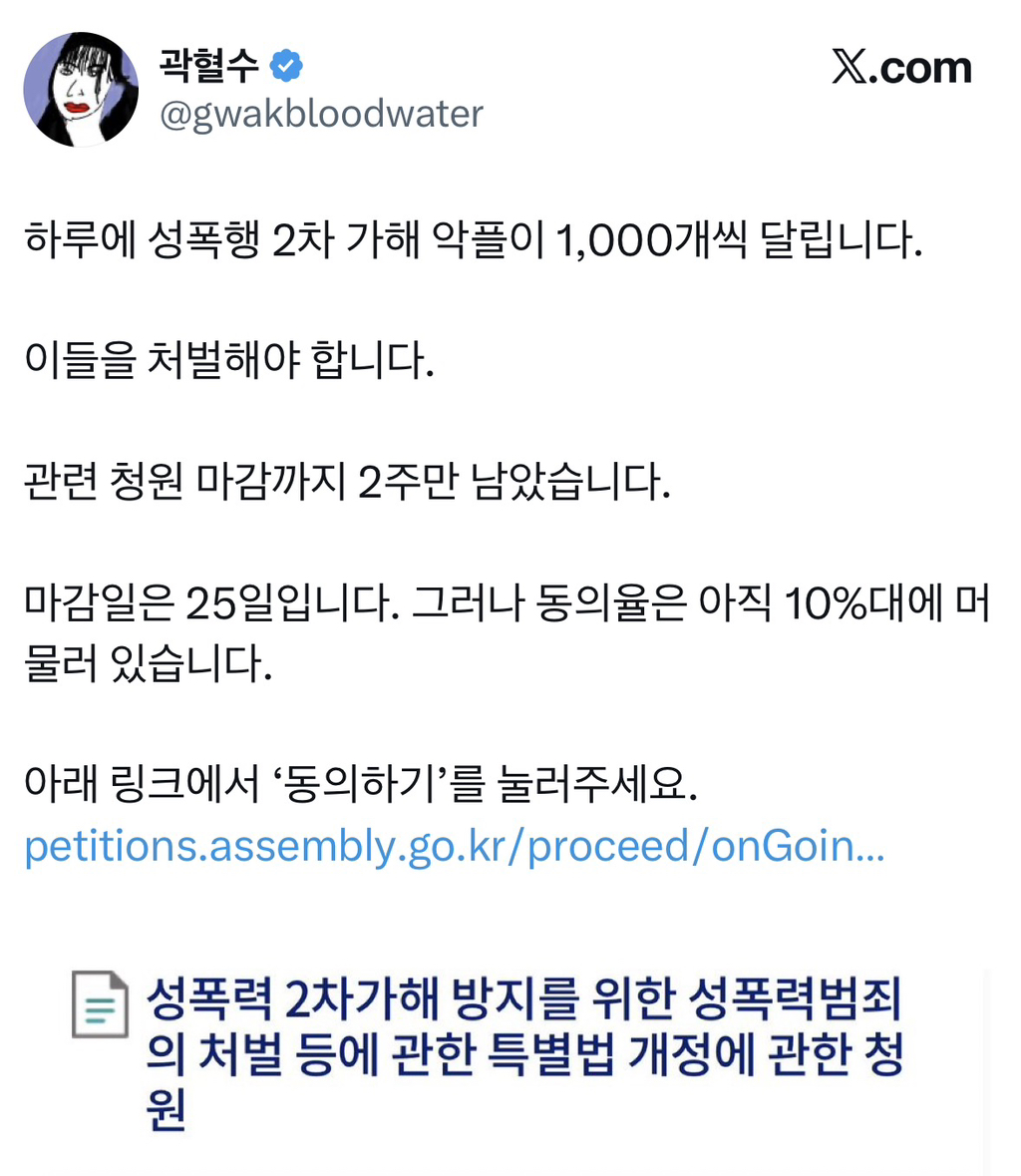 널리널리 퍼뜨려서 더 많은 이들이 청원에 동참할 수 있게