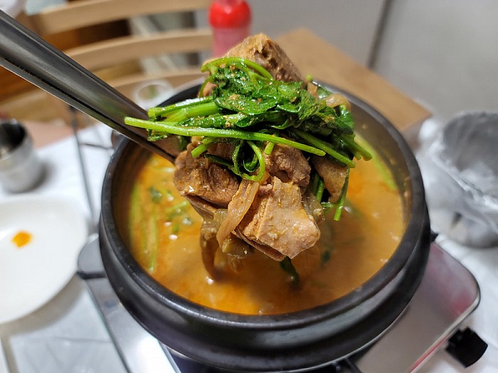 들깨 섞은 초장에 미나리랑 고기 찍어먹어야함
