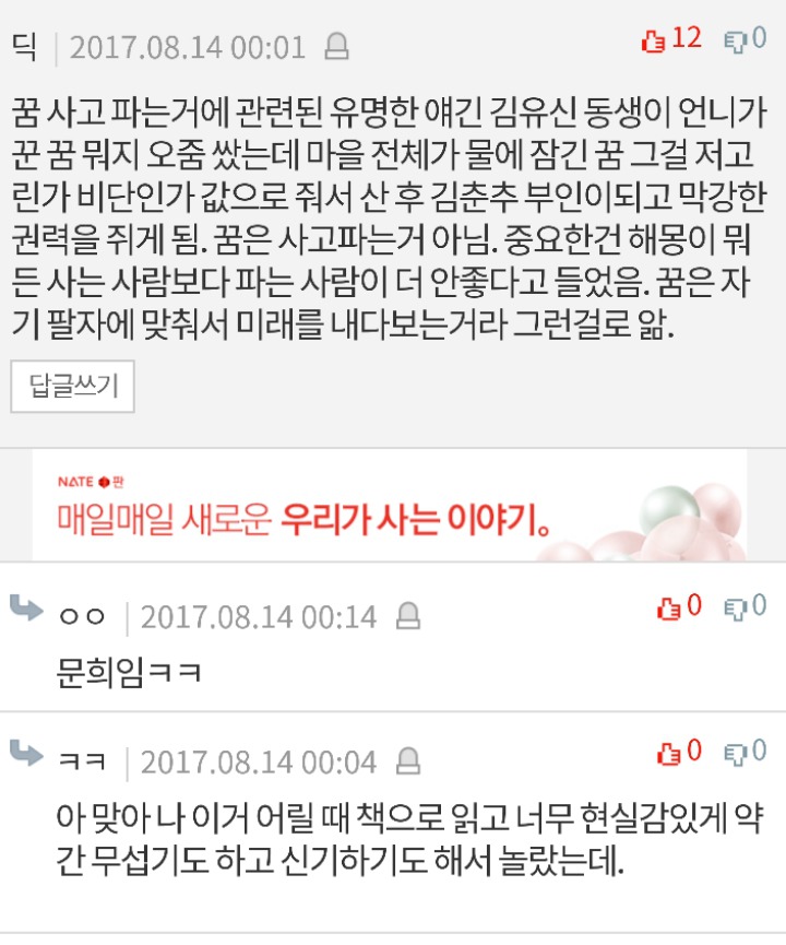 작성자어느봄날 작성시간 17.08.15 꿈 함부로 사고파는거 아니군요..