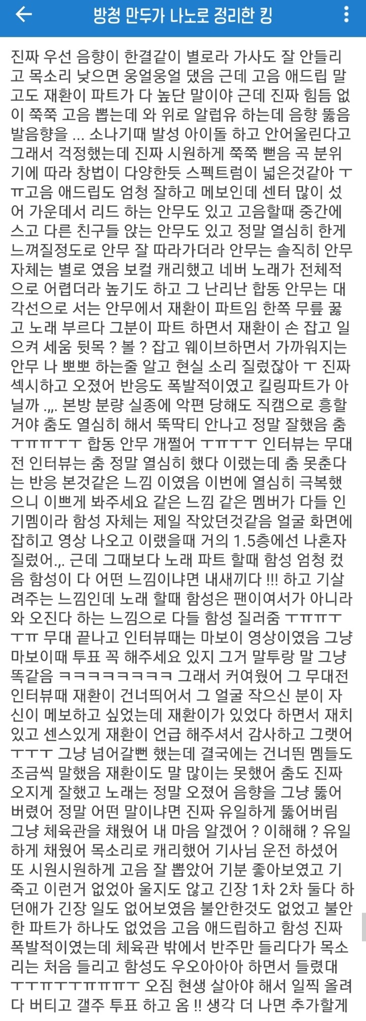 -인기멤버들 많은 팀이라 환호성은 가장 적은 느낌(ㅜㅜ)이었지만 노래 파트에서는 객석에서 와 잘한다는 느낌으로 함성 소리 커짐