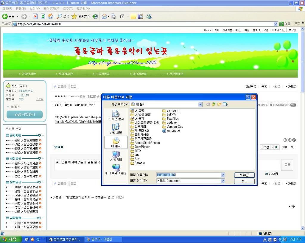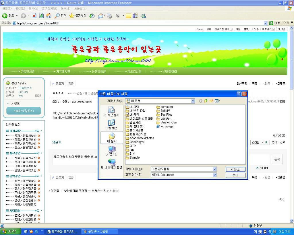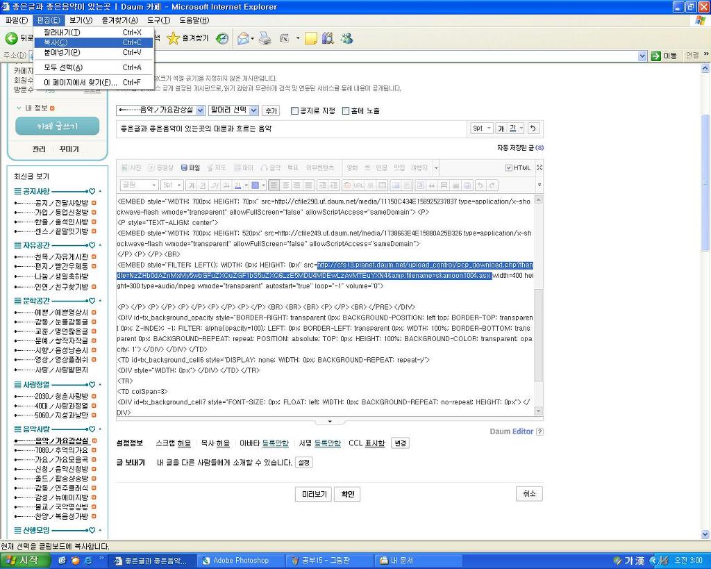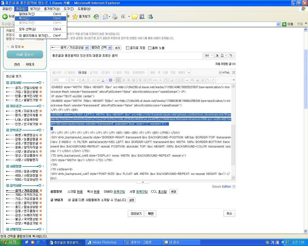 좋은글이나 음악을 복사하려고 하며