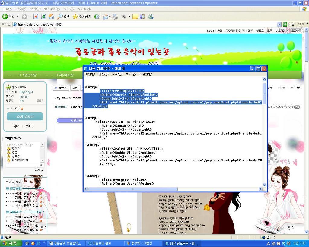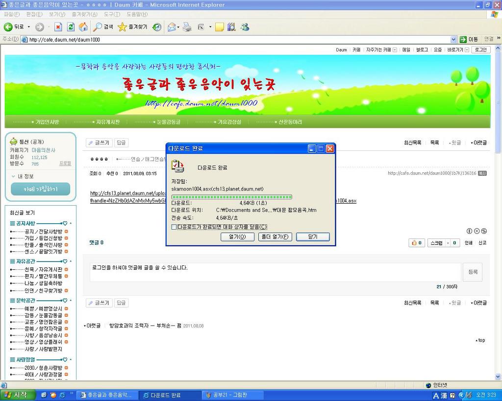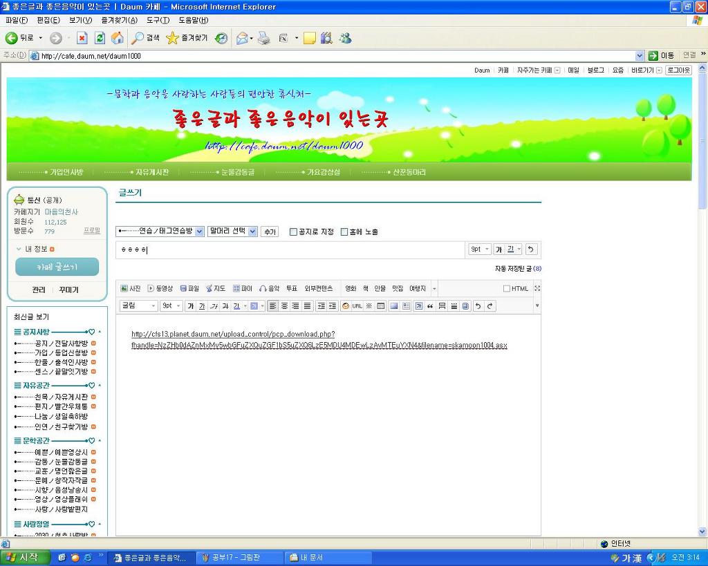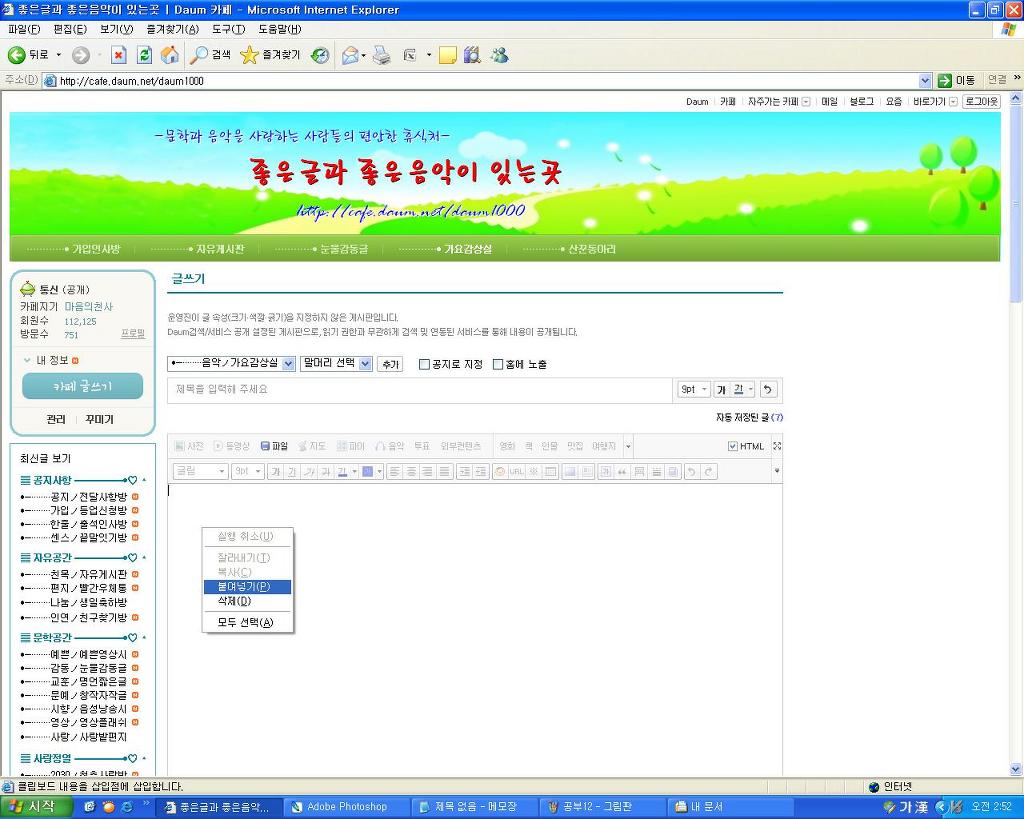 좋은글이나 음악을 복사하려고 하며
