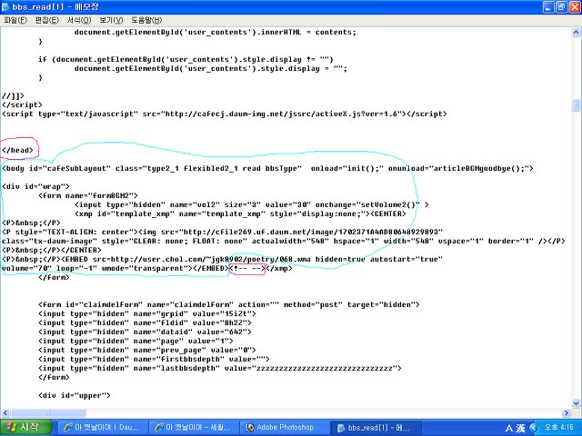 </head>가 보입니다. </head>다음 줄 부터 <!-- -->앞 까지가 본문 소스란걸 기억 해 주시기 바랍니다.