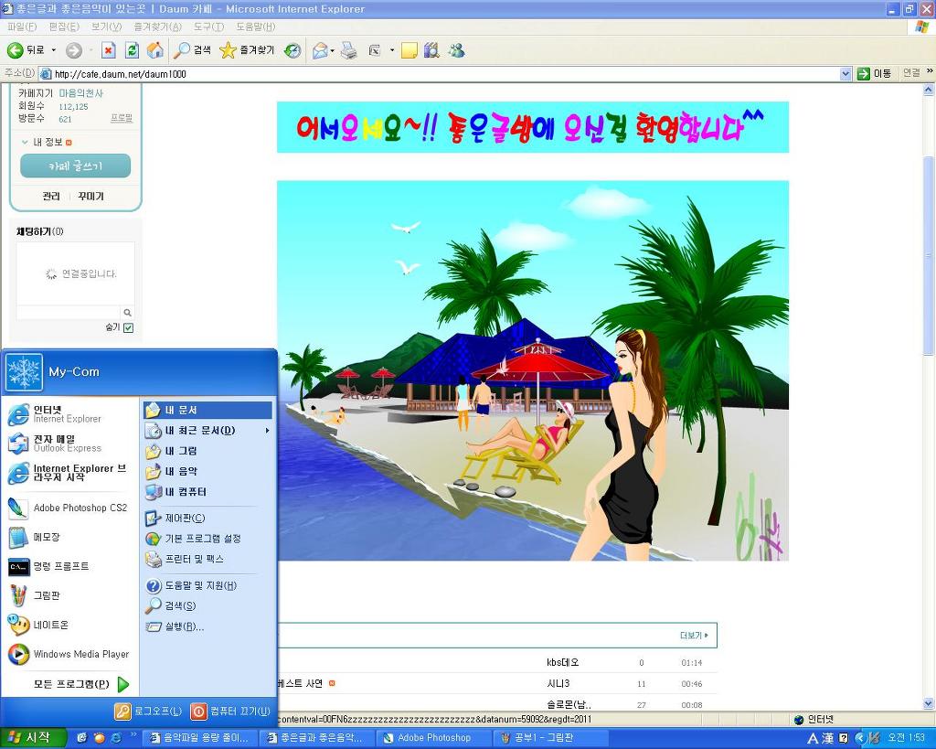 좀전에 저장해둔 대문 팝모음곡 열기.....와우~~