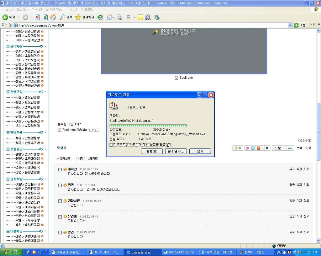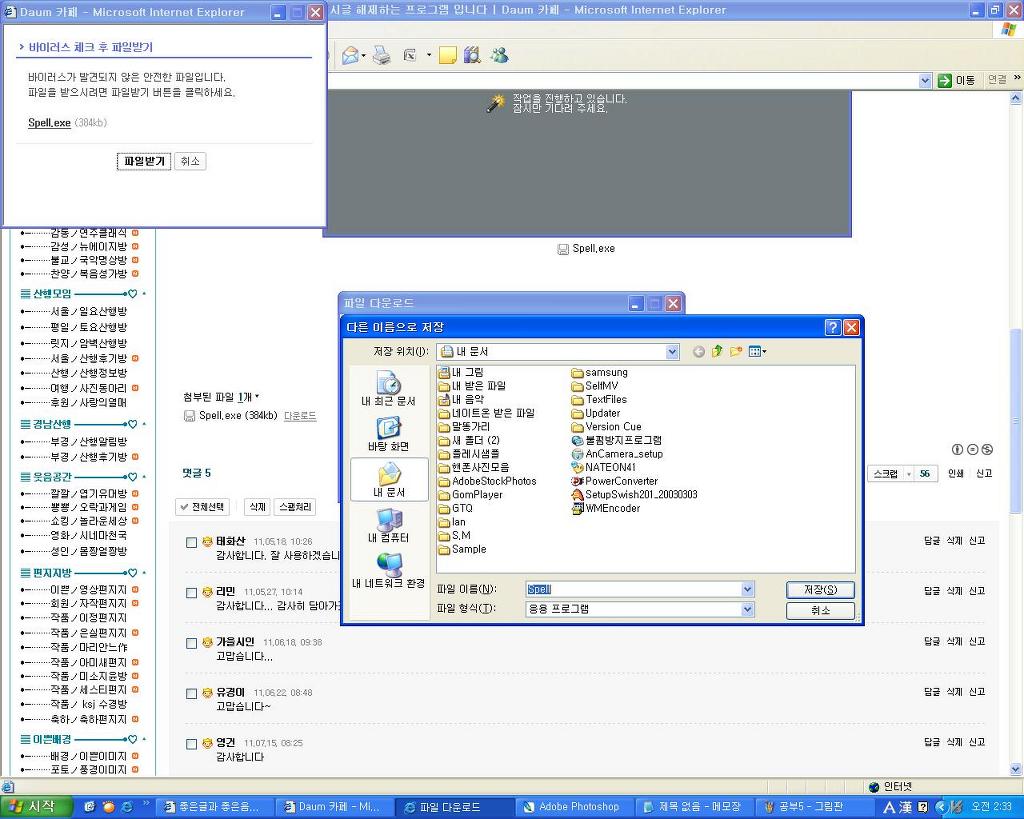 시작 →내문서 →spell 프로그램 두번 클릭