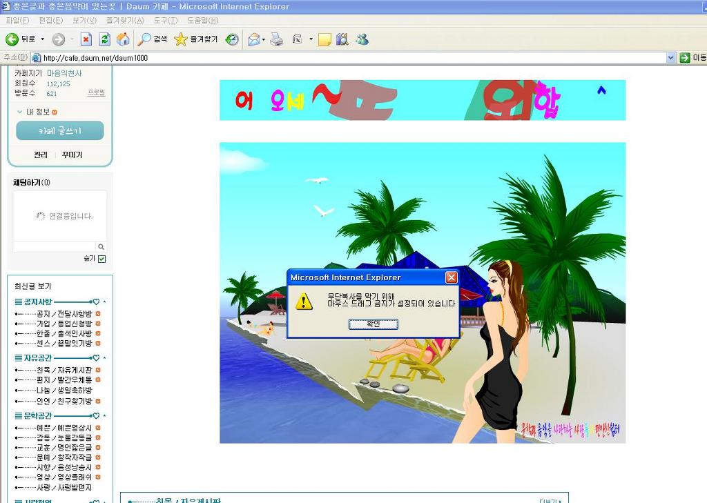 거의 모든 카페마다 복사금지..불펌 방지 해놓았을거에요..