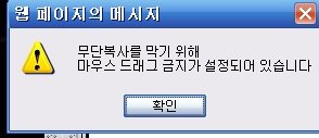 이런 마우스 드래그 금지표시가 뜨면서 기분이 확 잡치게된다