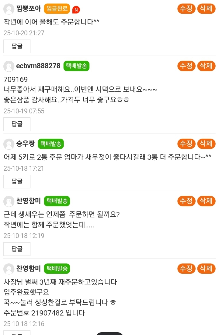 저희 새우젓 받으신분들 댓글 후기 참고부탁드려요