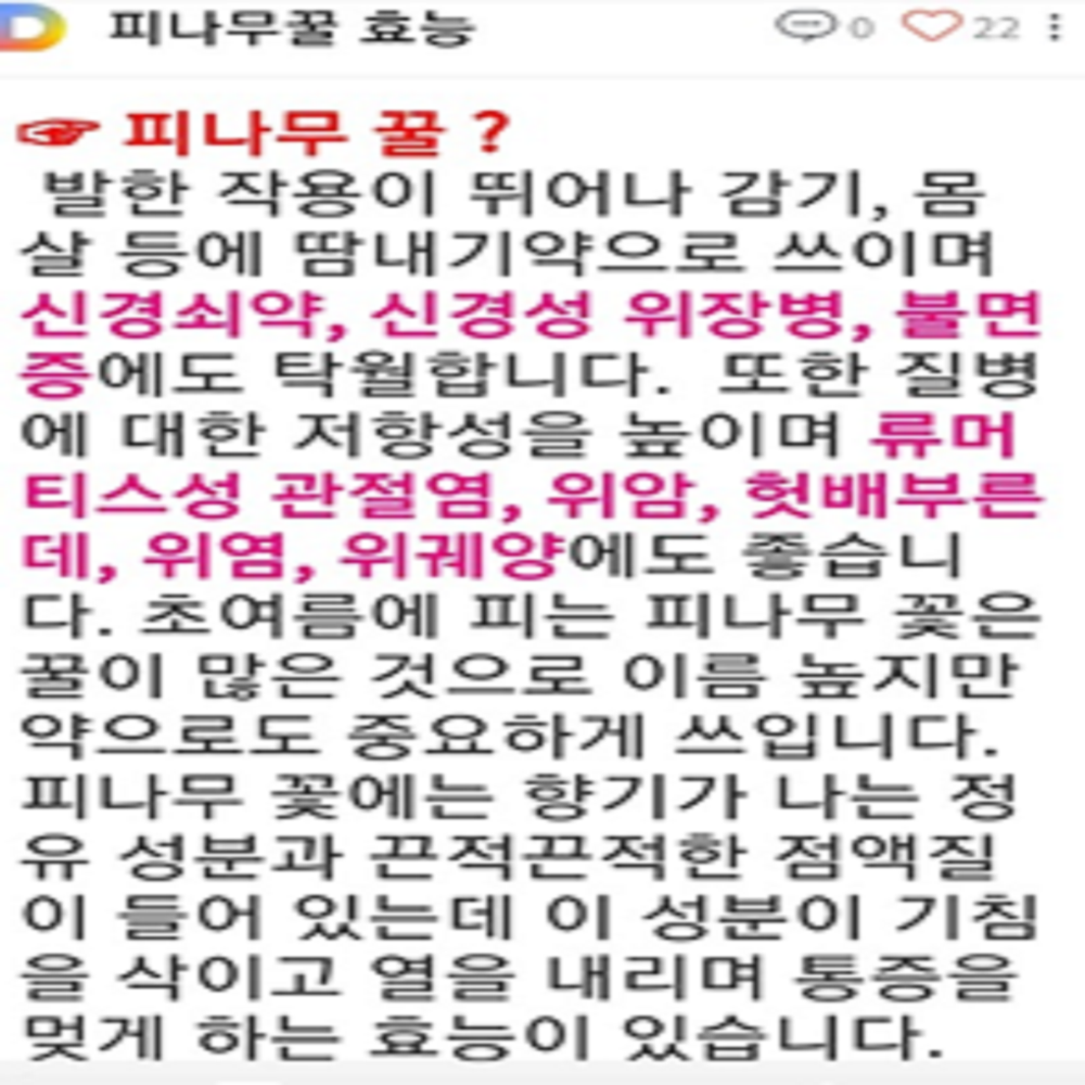 작성자실개천 작성시간 20.08.28 불면증과 관절염에 탁월하다 해서 주문했네요